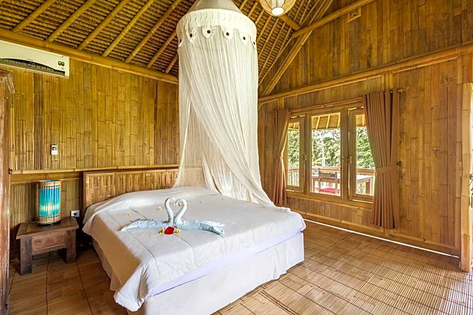 Overlooking the rice fields, this bamboo bungalow comes with air conditioning and a seating area.